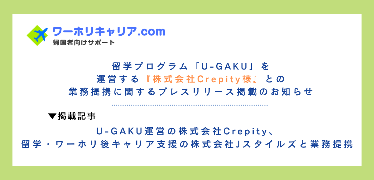 10~20代で海外に飛び出し、ワーキングホリデーや留学を通じて海外での生活や就労経験を積んだ方々が、経験を活かして活躍できるよう、キャリアサポートを行っています。