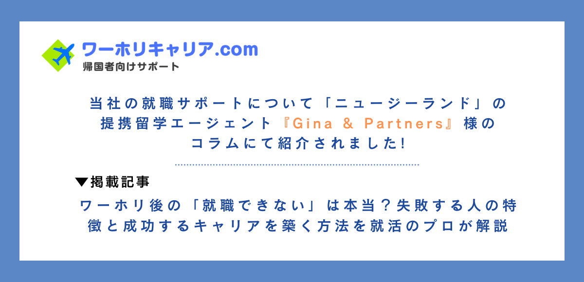 当社の就職サポートについて「ニュージーランド」の提携留学エージェント『Gina & Partners』様のコラムにて紹介されました!